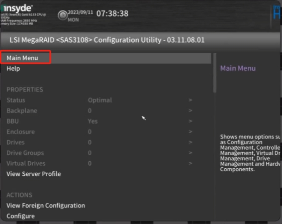 2、进入后选择LSI MegaRAID<SAS3180> Configuration Utility