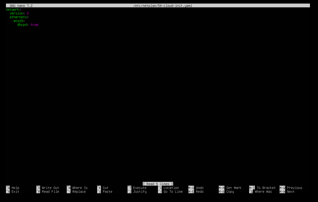 sudo nano /etc/netplan/50-cloud-init.yaml会进入这个界面: