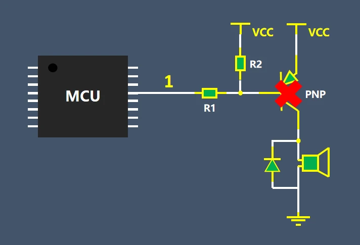 但是如果MCU的IO高电平小于VCC电压时,比如MCU的IO高电平为3.3V,而VCC等于5V时,由于三极管BE间的电压还是会小于开启电压,三极管还是会导通,三极管会出现关不断的现象。